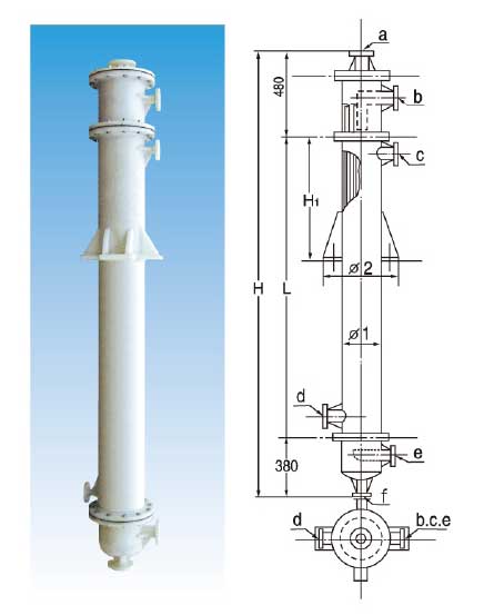 a.氣體入口 d.冷卻水進口 上部:內有鋸齒形溢流分布裝置。